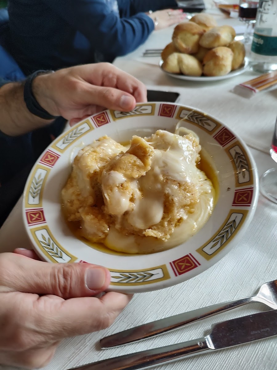 Buon ristorante con tutti piatti tipici, buonissime le crespelle al bitto come in foto, porzioni abbastanza abbondanti. Personale poco disponibile e gentile ma nel complesso considerando che il cibo è buono, posto consigliato! Ci sono i tavoli sia dentro che fuori. Si trova vicino al parco avventura. (Si consiglia di prenotare)